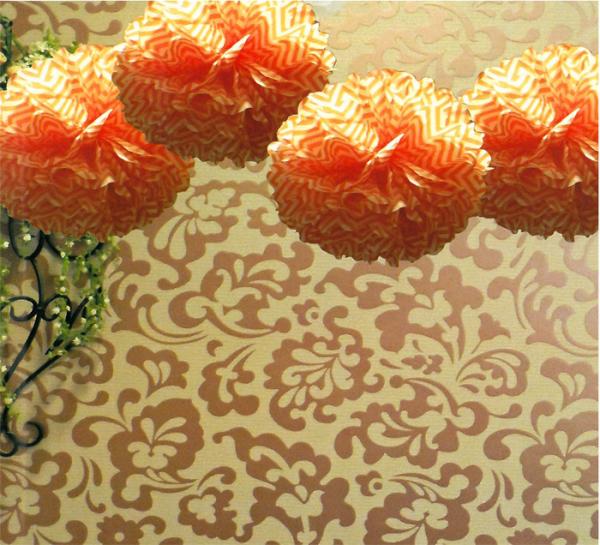 These new style orange and white Chevron pom pom is new to our collection. With the increase popularity of Chevron patterns, we have introduced our exclusive line of Chevron Pom Pom's, be unique and exclusive, purchase Chevron pom pom's from the Paper Lantern Store.